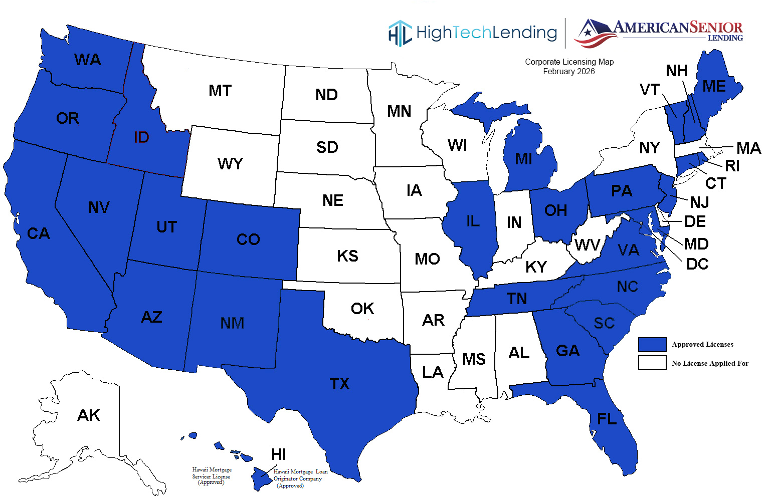 HighTechLending, Inc is also doing business as American Senior; American Senior Lending; Community West Mortgage; Edie Moore Loans; First Hawaiian Mortgage Co. of Hawaii; Golden Heritage Financial; HighTechLending; Reverse Mortgage Specialists of Hawaii.